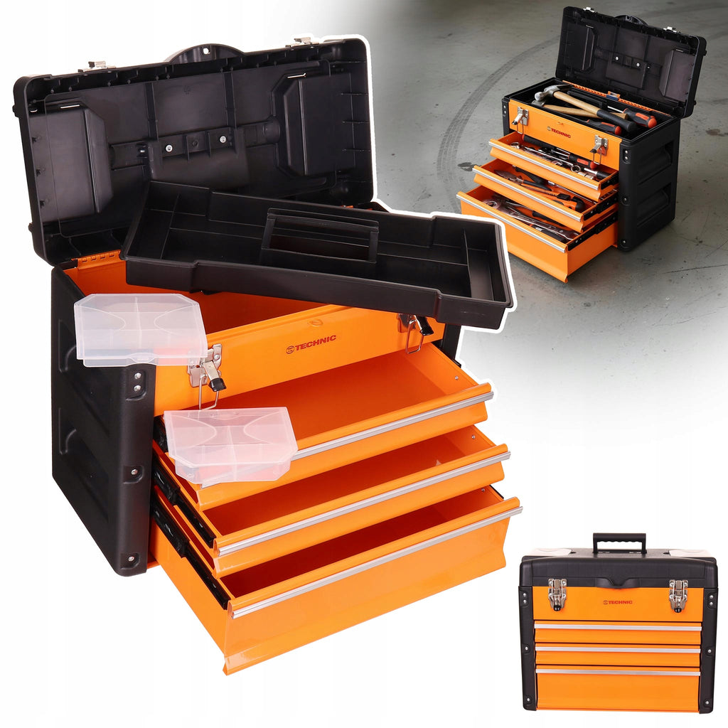 ✅ Vysoce kvalitní prostorná krabice na nářadí se třemi zásuvkami, vyrobená z kombinace kovu a odolného ABS plastu.