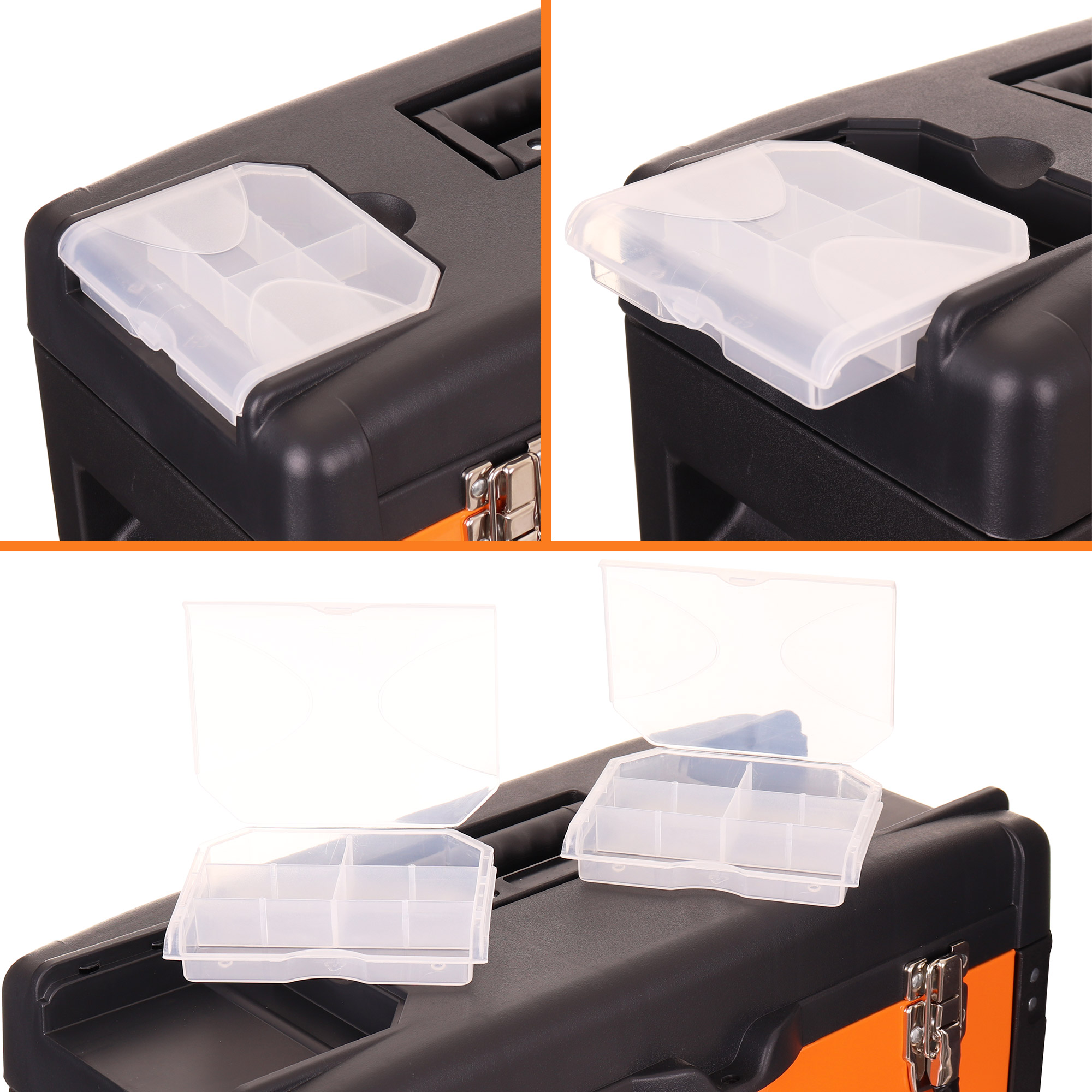 ▶️ 2 organizéry ve víku – vysouvací, na šrouby a drobné součástky.