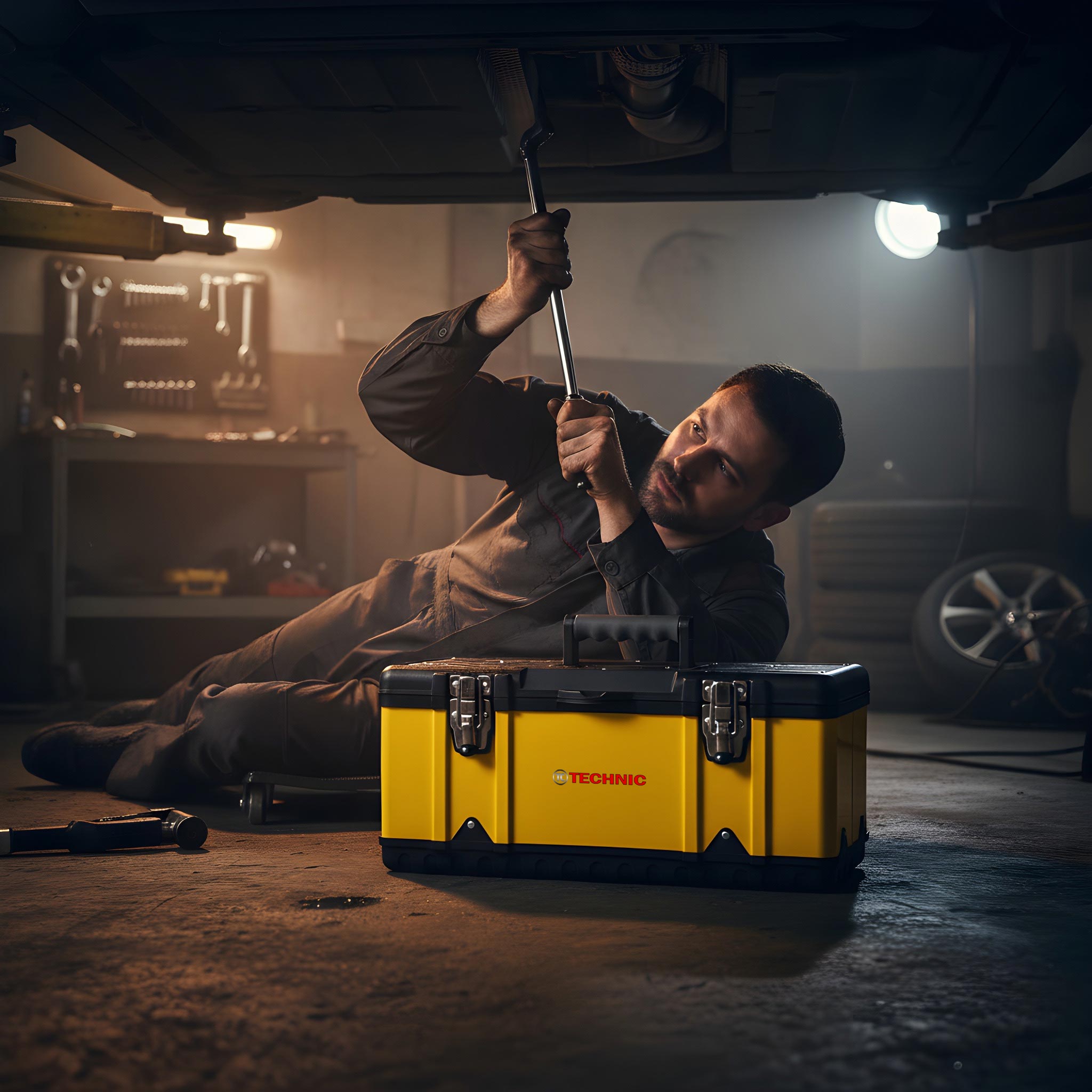 Kompaktní a robustní bedna na nářadí z lakované oceli a odolného ABS. Ideální pro uložení drobného nářadí a příslušenství v dílně, garáži nebo domácnosti.