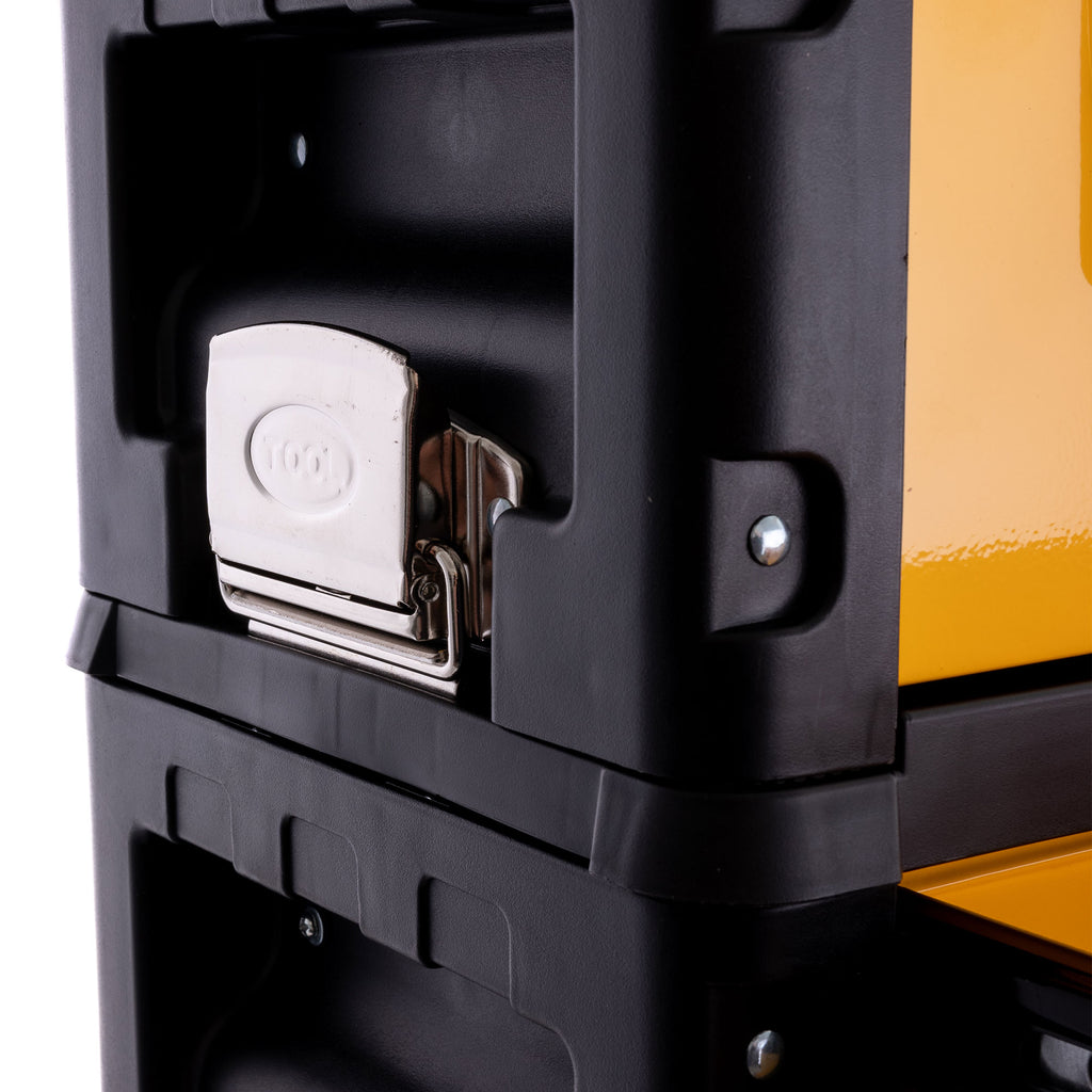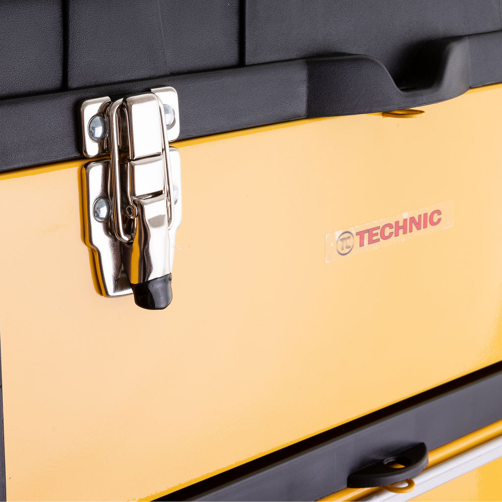 Vyroben z ocelového plechu a odolného ABS plastu. Ideální pro skladování a přepravu nářadí v dílně, garáži nebo na stavbě