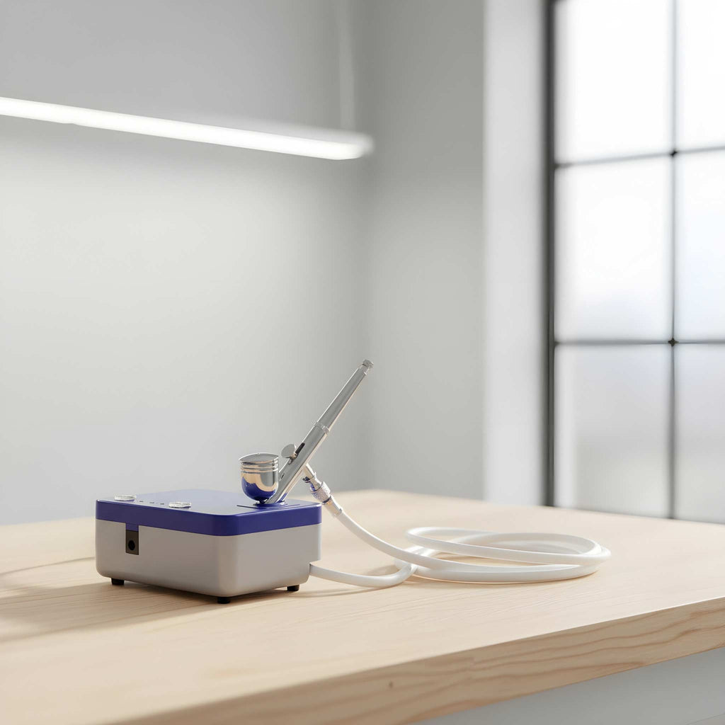 ▶️ Vybaveno stojánkem, takže airbrush můžete během přestávek bezpečně odložit.