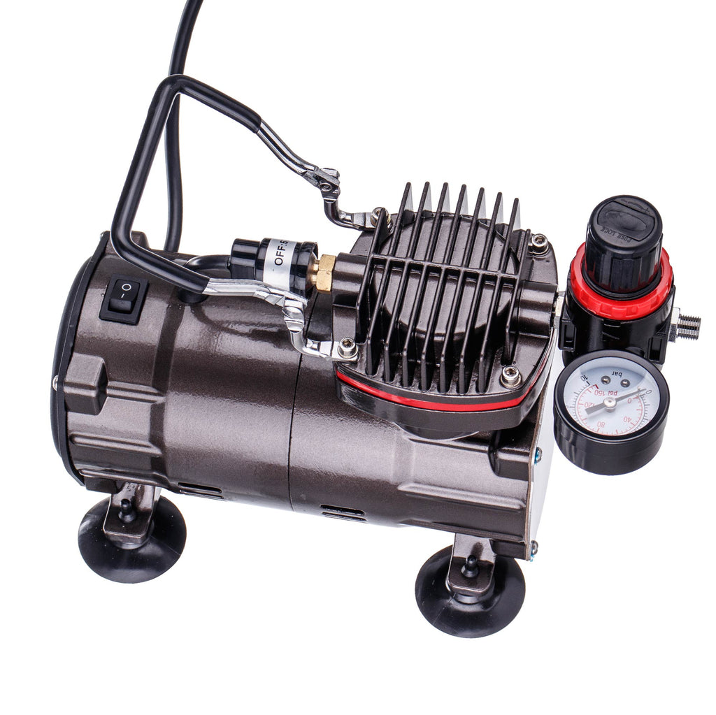 ✅ Kompresor zajišťuje plynulý provoz s většinou airbrushů – zvládá modely s tryskami od 0,2 do 0,8 mm.