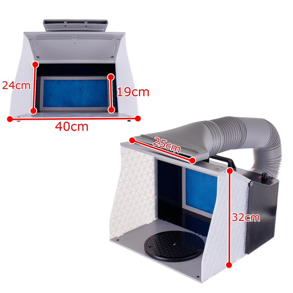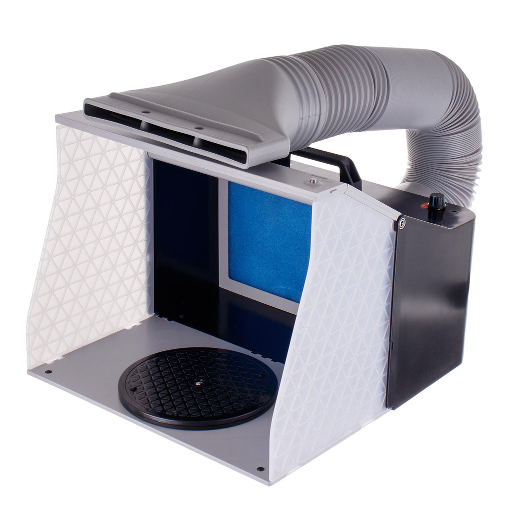 Stříkací kabina je kompaktní, efektivní a mobilní řešení pro bezpečné stříkání barvy. Nezbytná pro modeláře, umělce, hobbyisty a kutily. Chrání uživatele před vdechováním škodlivých výparů a omezuje šíření barvy, čímž zajišťuje pohodlné pracovní podmínky doma nebo v dílně.