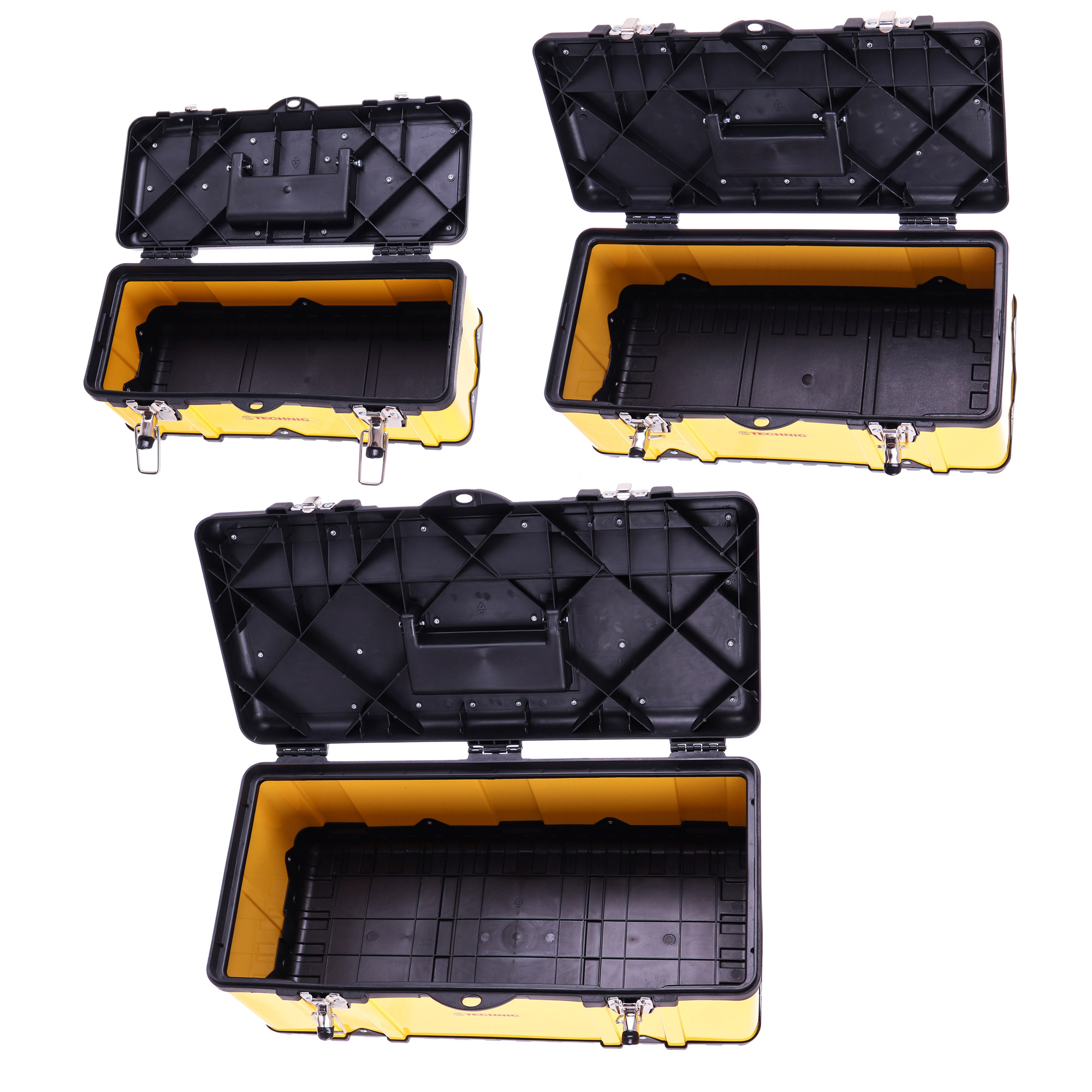 Profesionální sada 3 krabic na nářadí vyrobených z lakované oceli a odolného ABS plastu. Ideální řešení pro skladování nářadí v dílně, garáži a doma.