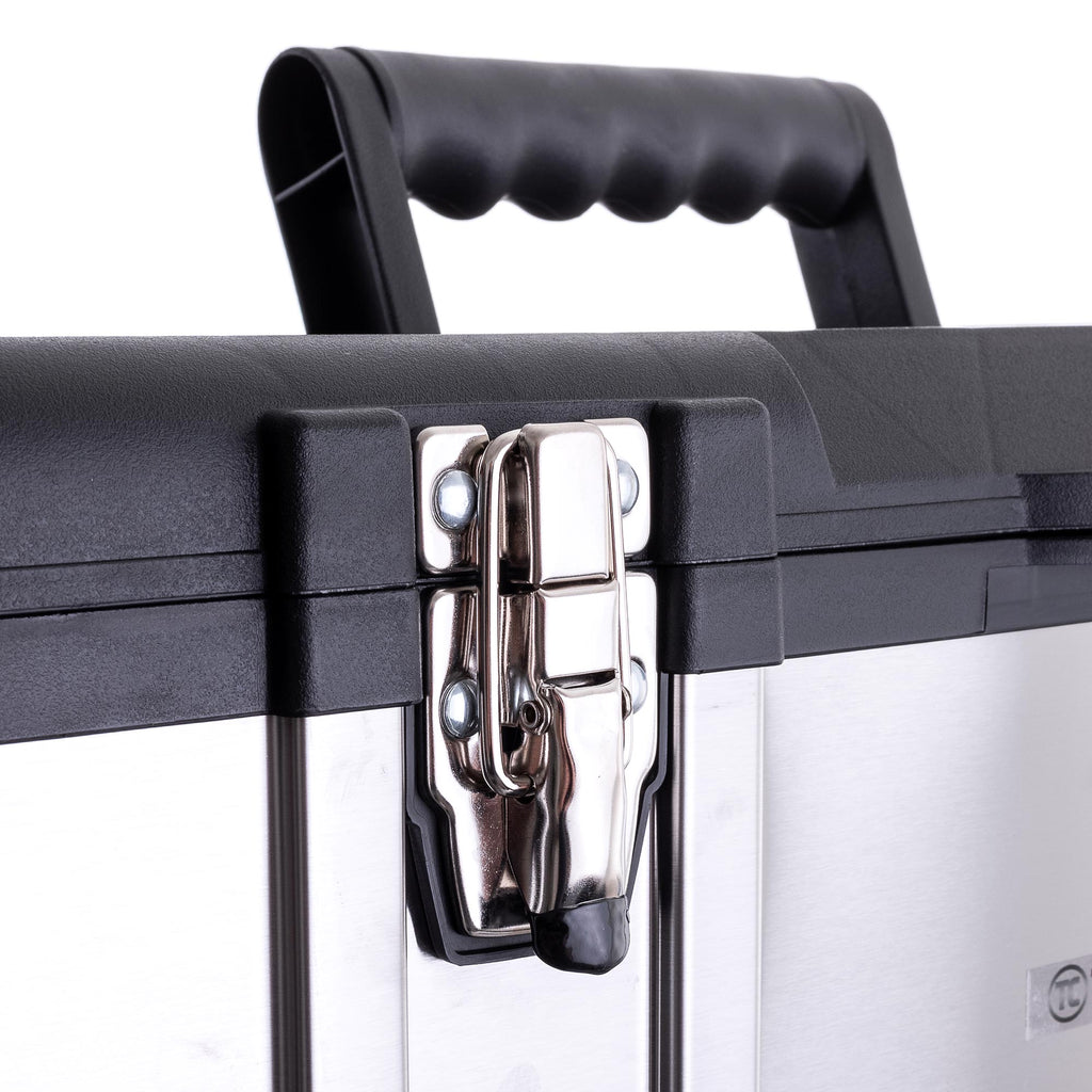 Vysoce kvalitní sada nářadí vyrobená z kombinace nerezové oceli a odolného ABS plastu. Ideální pro skladování nářadí v dílně, garáži nebo doma.